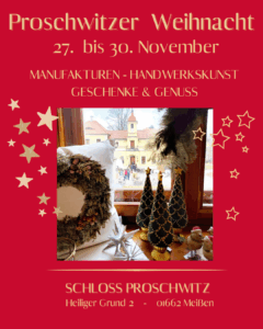 Lassen Sie sich alljährlich zum 1. Adventswochenende vom besonderen „Proschwitzer Flair“ weihnachtlich verzaubern.