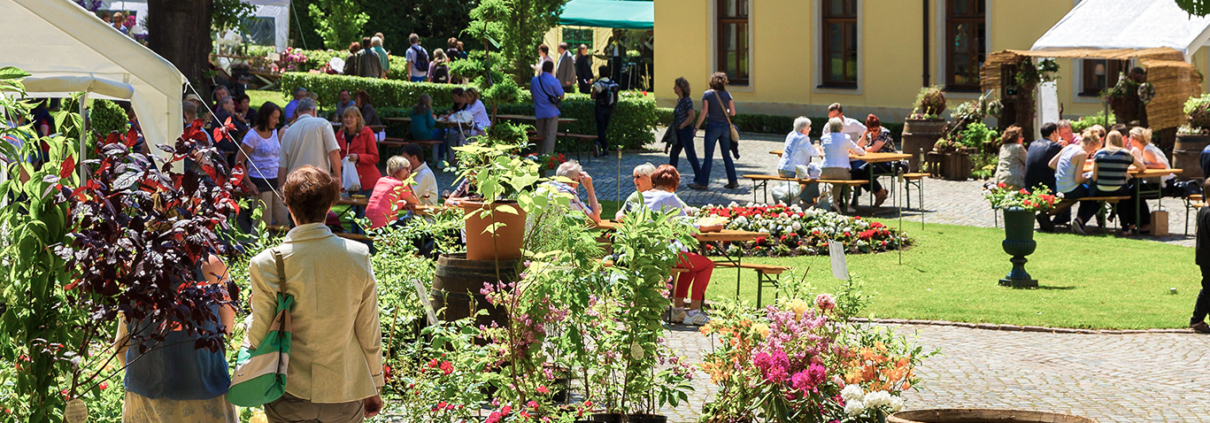 Alljährlich präsentiert die Sächsische Zeitung ein buntes Markttreiben auf Schloss Proschwitz mit Kunst, Antiquitäten & Pflanzen für Balkon und Garten.